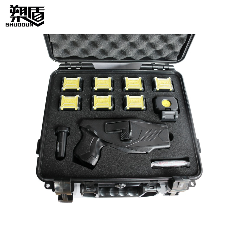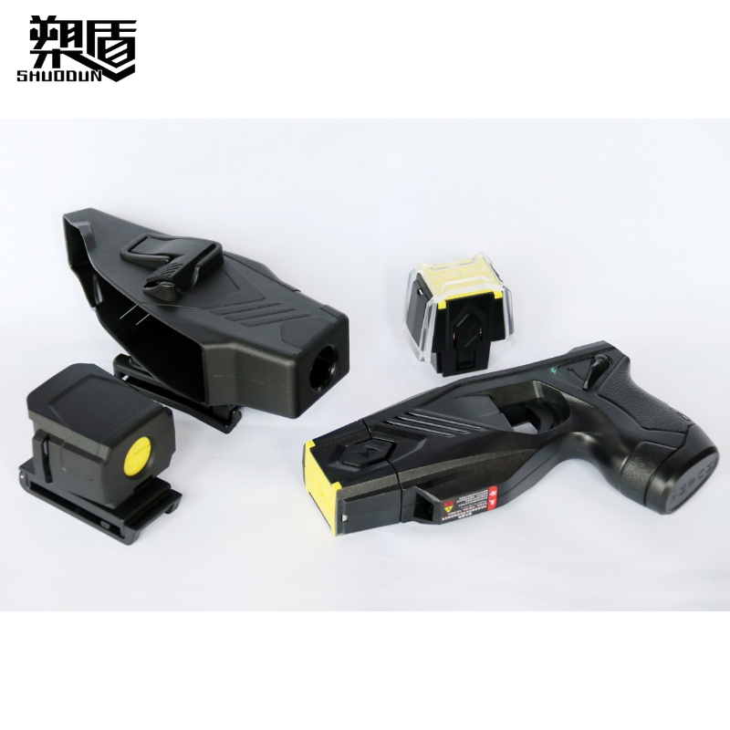 具备激光瞄准、电击弹发射、LED辅助照明、电池信息记录、电池电量显示、安全开关保险和连续电击保护等功能;