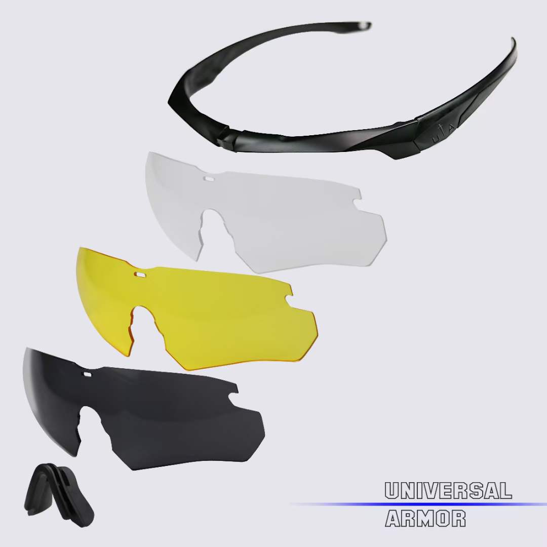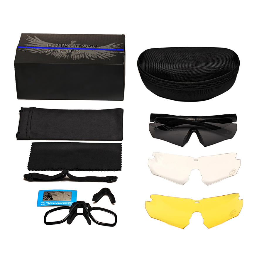 镜片的防弹性能:常温条件下,使用18.4mm霰弹枪和12号猎枪弹对三种镜片(深灰色、高清黄色、透明)