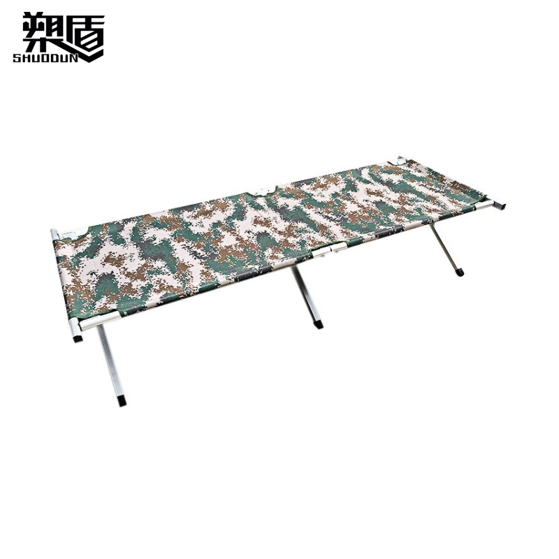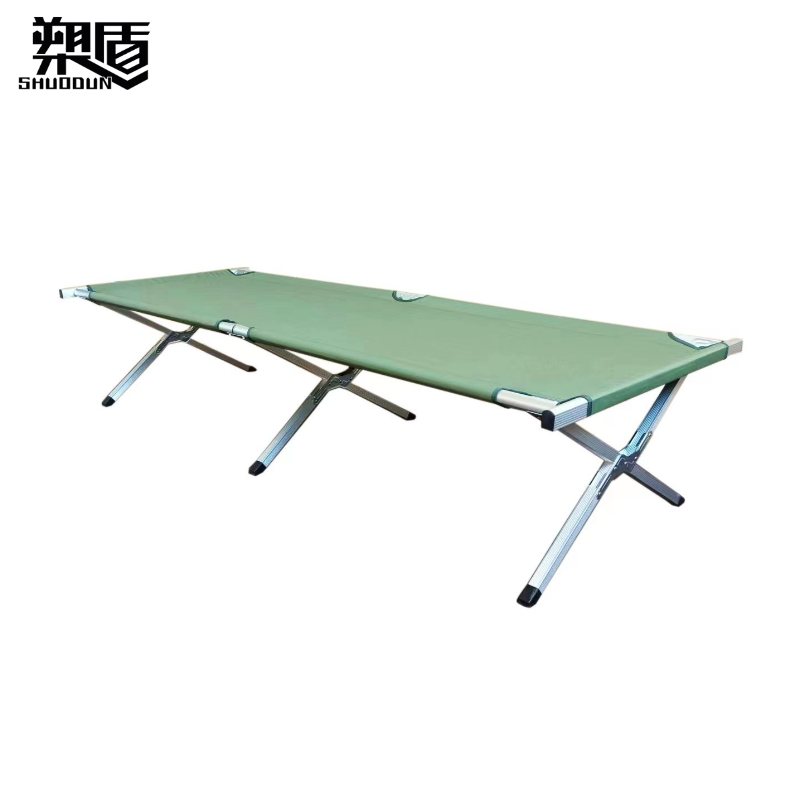 行军床是供部队行军途中使用的专用工具,采用铝合金框架外接帆布制成。